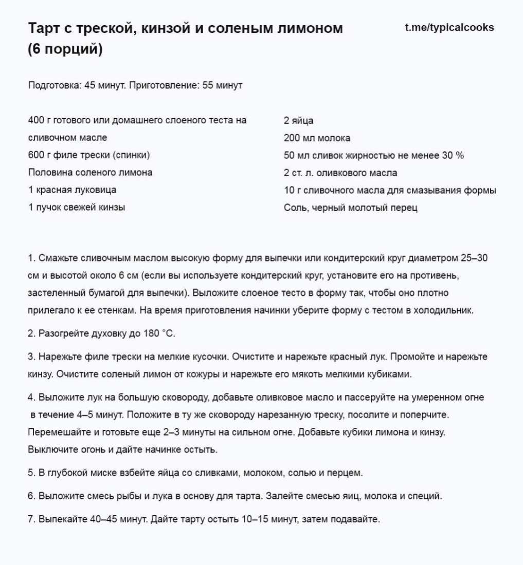 Тарт с треской, кинзой и соленым лимоном