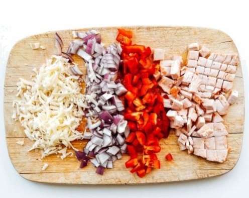 2. Можно взять варёную или запечённую курицу, или заменить любой ветчиной.