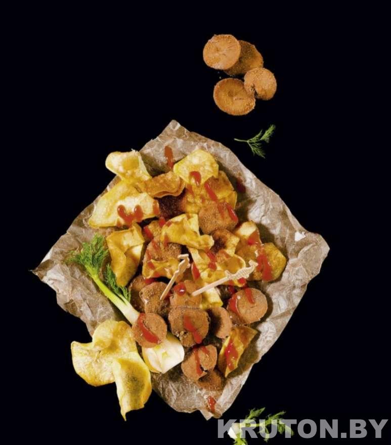 Хрустящие монетки из бараньих тестикул с фенхелем и чипсами