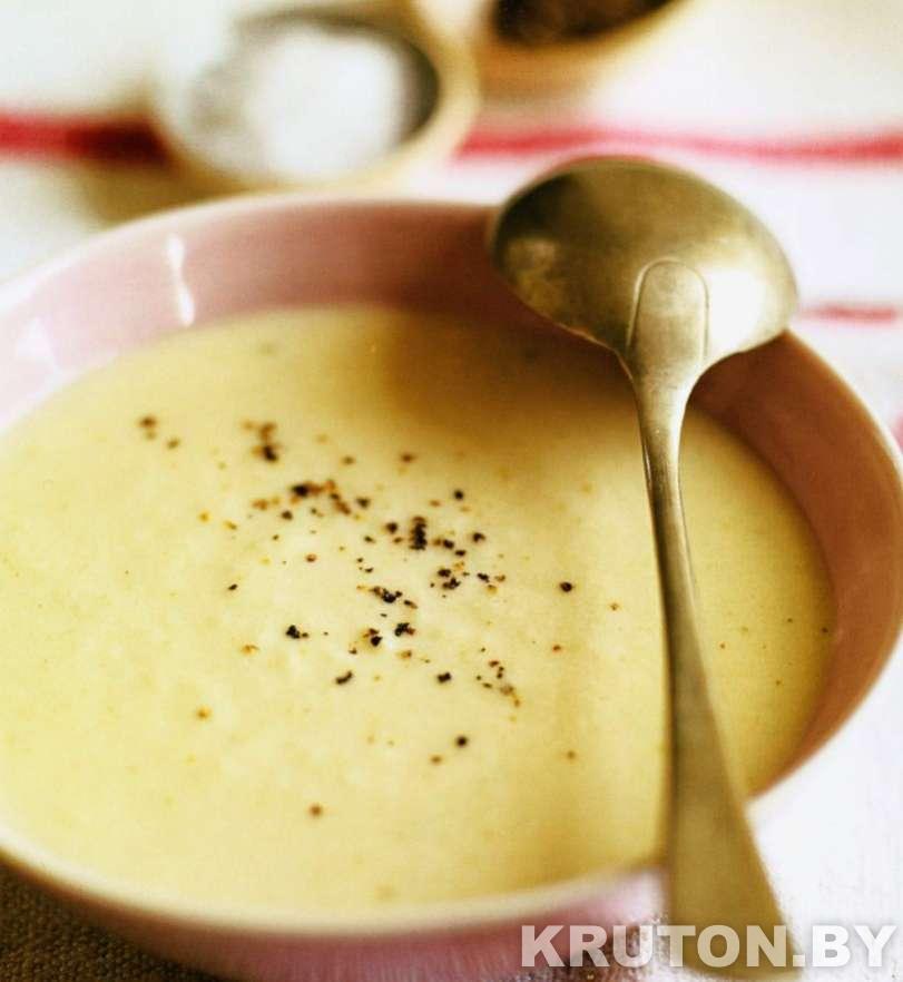- Репчатый лук пассеровать до золотисто-коричневатого цвета на сливочном масле, заварить его мукой, влить бульон, добавить лавровый лист, щепотку сахара, соль и специи, варить на слабом огне 30 минут. - Поджарить на сковороде с антипригарным покрытием или в духовке нарезанный тонкими ломтиками свежий белый хлеб, лучше всего багет или батон.