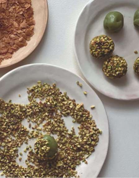 Состав набора: фундук (лесной орех), финики, какао-порошок. Вес: 90 гр / 6 шт.