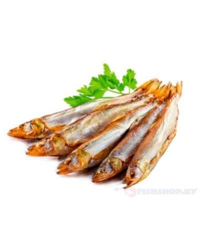 Приготовлен на щепе ольхи и фруктовых деревьев. Имеет восхитительный аромат, приятный вкус и мягкое нежное мясо. Без головы и внутренностей . Средний вес рыбки 300-400 грамм. Мясо имеет белый цвет и минимальное содержание костей.
