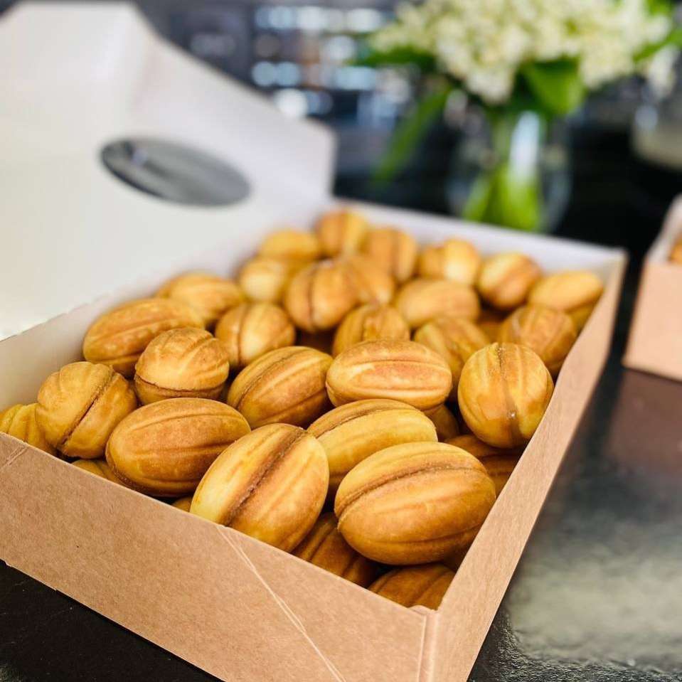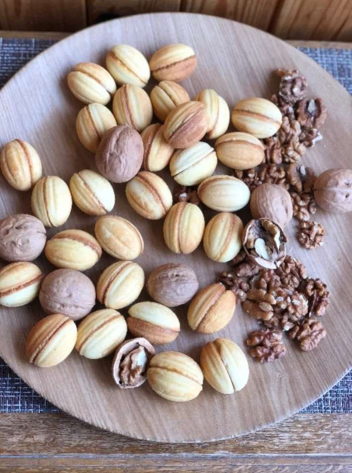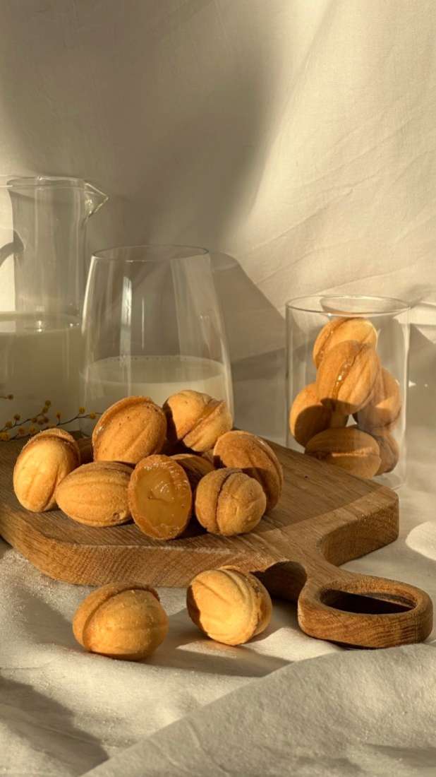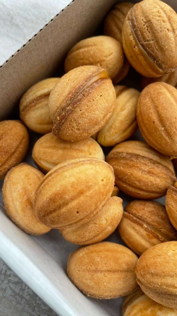 Идеальный дуэт: рассыпчатая песочная "скорлупка" и тающая во рту вареная сгущенка. Каждый орешек — это маленькое произведение искусства, собранное вручную с заботой.