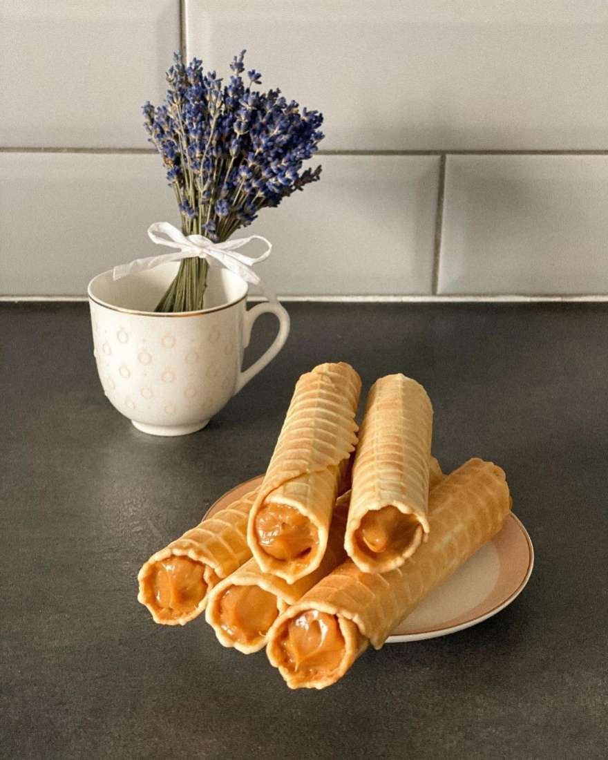 28.00 С НДСТрубочки с варёной сгущёнкой — это хрустящее слоёное печенье, закрученное в изящную трубочку и наполненное густой, ароматной начинкой из варёного сгущённого молока. Идеальный баланс воздушной, маслянистой текстуры теста и насыщенного карамельно-молочного вкуса начинки.
