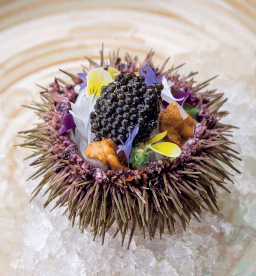 Баренцевский гребешок в соусе понзу с икрой морского ежа