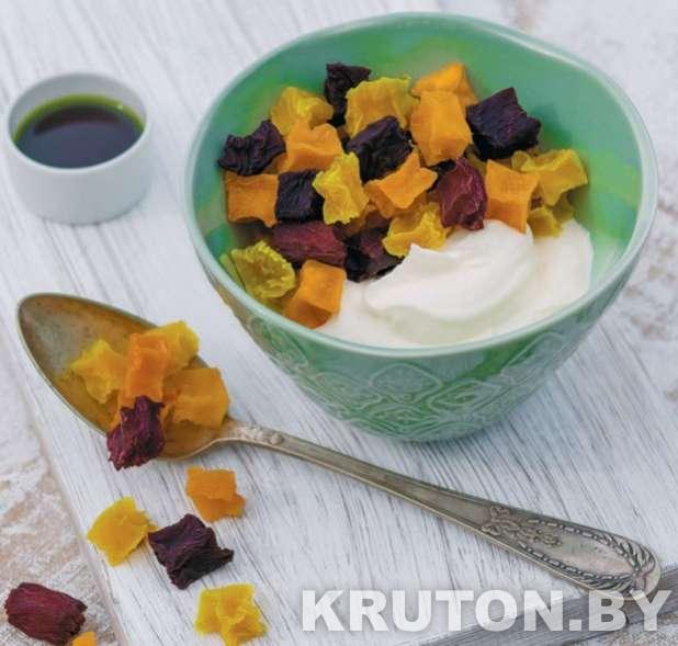 Вяленые корнеплоды с творожным муссом