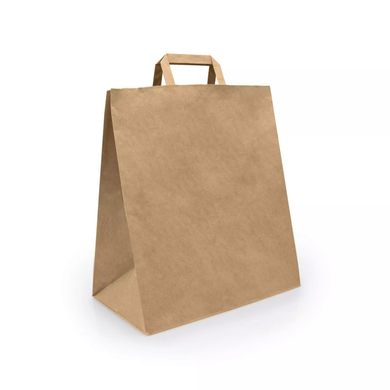 Бумажные пакеты с плоскими ручками, идеально подходящие для ресторанов, кафе и служб доставки. Подходят для горячих блюд, выпечки и продуктов.