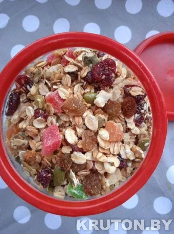 Состав: Натуральные злаки, орехи/семечки, сушеная клюква (без сахара или с минимальным добавлением).