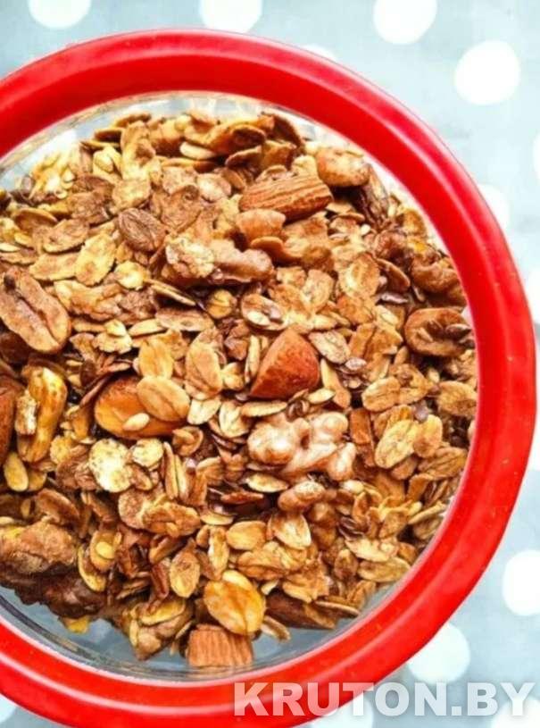 12.00 С НДСГранола - это запечённая смесь из овсянки грубого помола, сухофруктов и орехов. Она не содержит сахара, всю сладость ей придаёт мёд или банановое пюре.