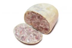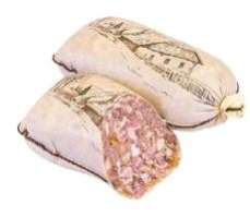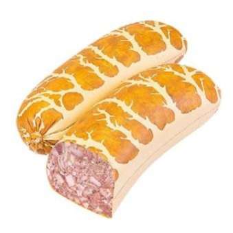 8.18 С НДСОтварное колбасное изделие высшего сорта, представляющее собой рубленую массу из мяса, печени и свиных продуктов, приготовленную в текстильной оболочке. Является разновидностью зельца.