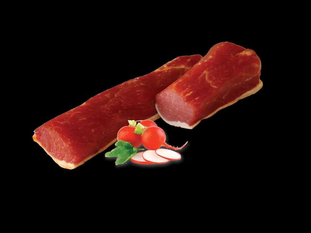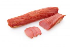 19.55 С НДССоленый мясной продукт высшего сорта, изготовленный из нежнейшей мышечной ткани свиной вырезки (филе). Отличается минимальным содержанием жира, плотной текстурой и чистым мясным вкусом.
