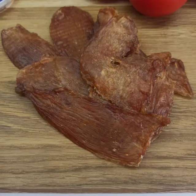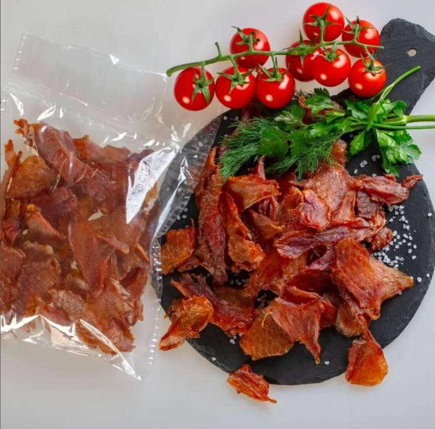10.00 С НДСМясные чипсы или джерки приготовлены из натуральных продуктов (мясо свинины, курицы) с добавлением соли и специй путём сушки в дегидраторе.