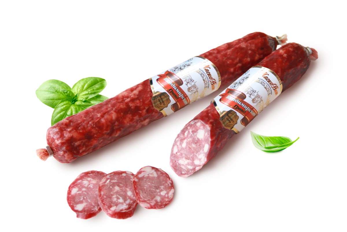 Изделие колбасное сыровяленое салями. Колбаса мясная "От бабушки" в/с (Молодечно)