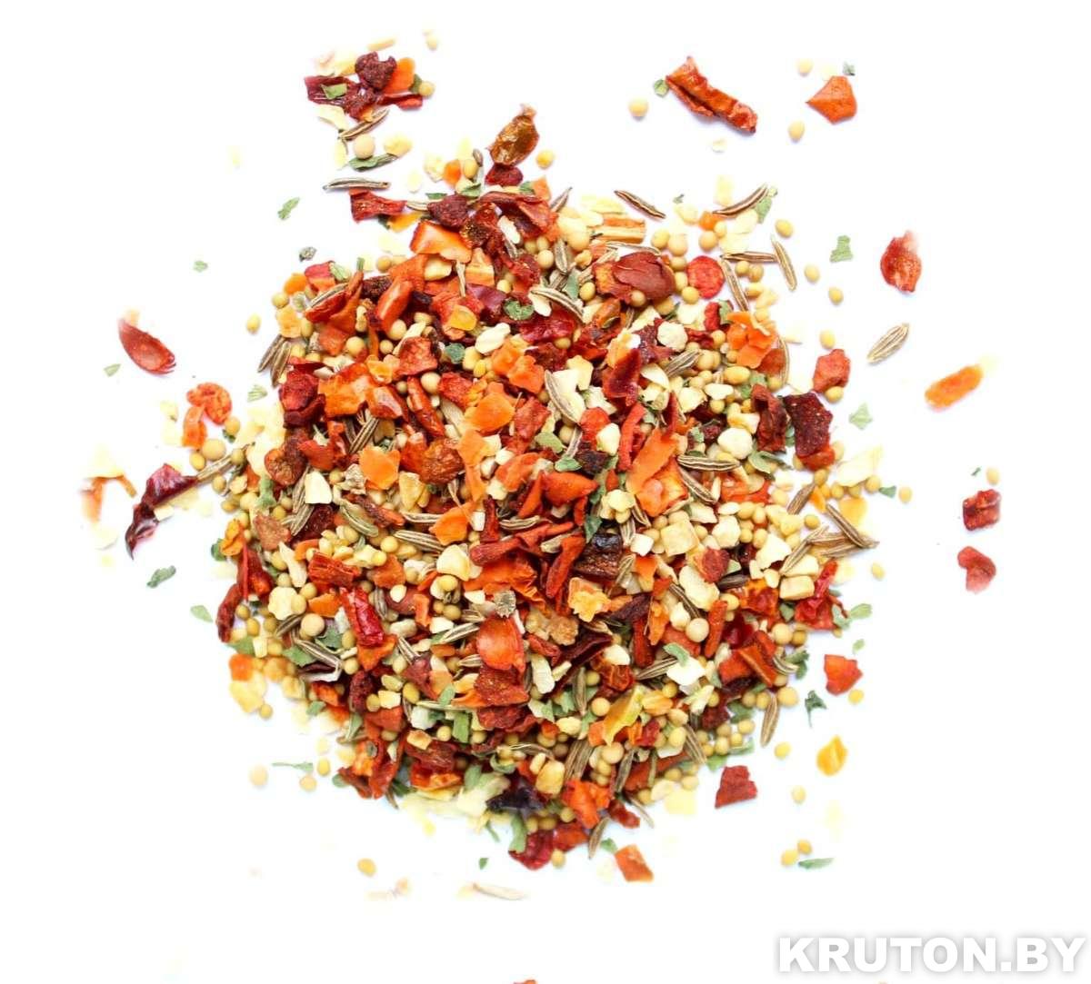 Состав: пряности (кориандр, перец красный сладкий, базилик, пажитник, перец красный острый, куркума, мята, лавровый лист), соль