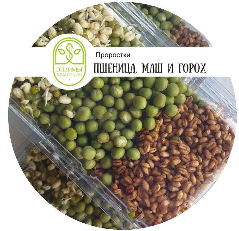 Микс из проростков пшеницы, маша и гороха, нетто: 200гр