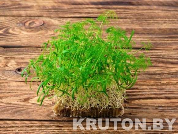 Внешний вид: Пучок свежих, ярко-зеленых побегов с листьями, растущий в небольшом пластиковом или биоразлагаемом стаканчике.