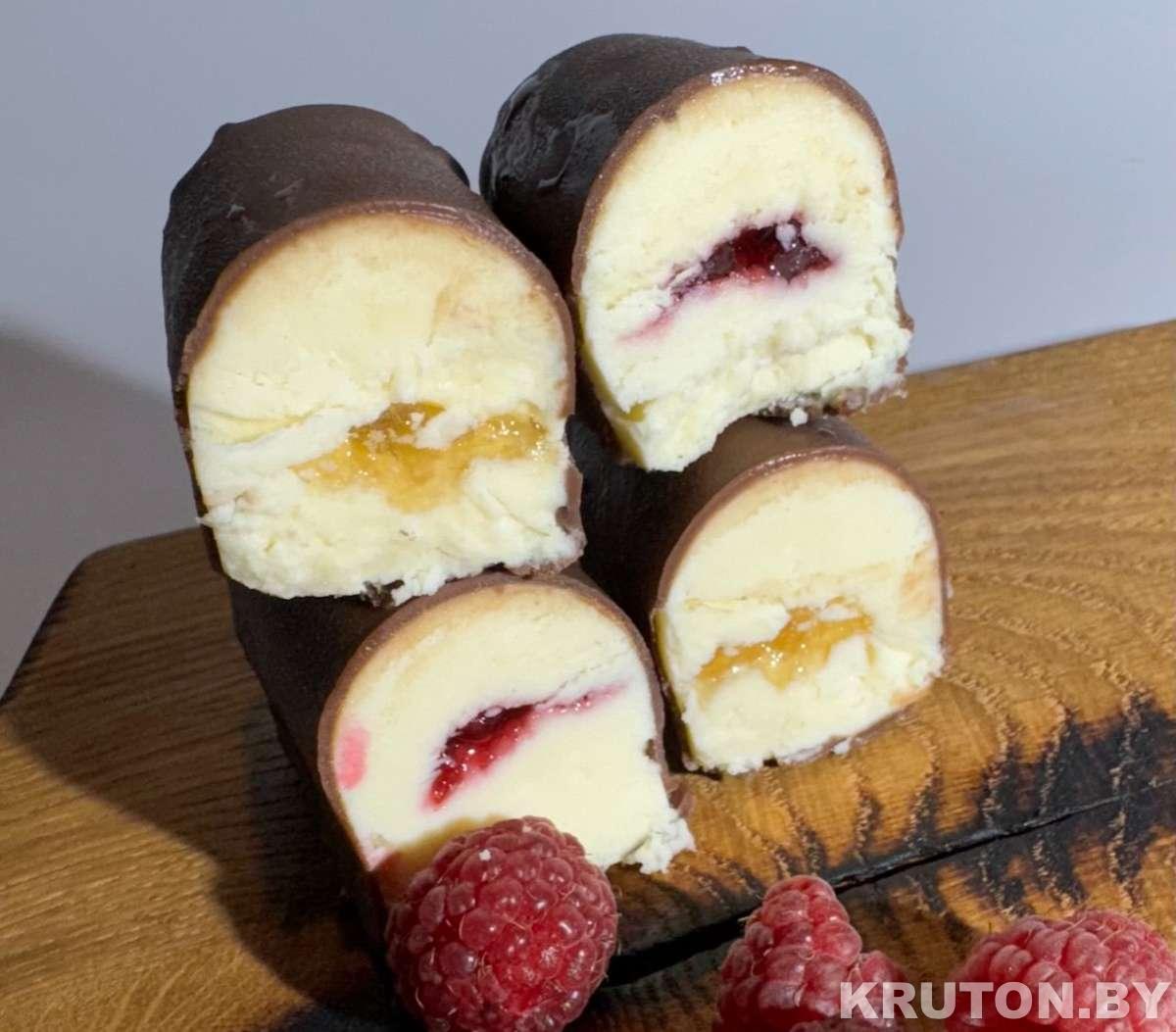 Можно выбрать без начинки или набор с начинками. Начинки в наборе: один сырок с малиной, второй манго+груша.