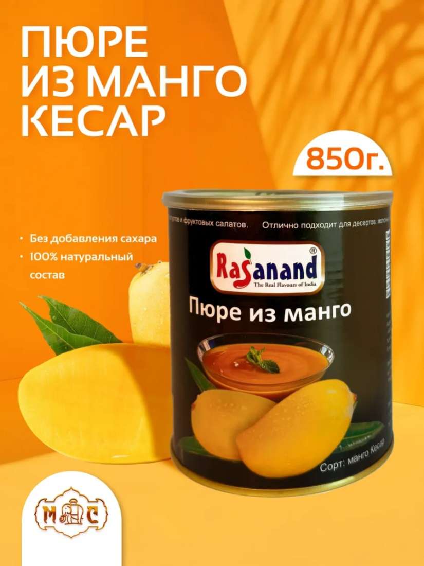 Пюре Фруктовое из манго ТМ "Rasanand" (сорт Кесар), 850 гр., ж/банка, нетто: 850кол-во пачек в коробке 12, срок годности: 3 года