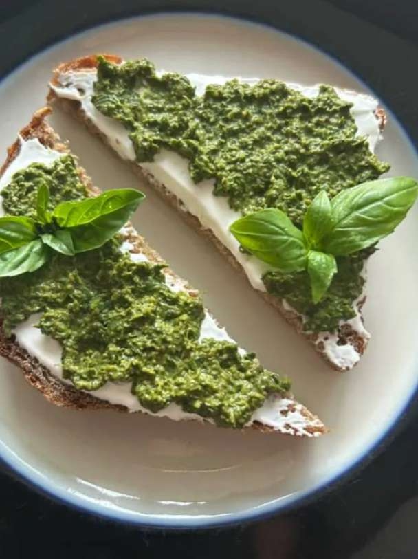 Состав: базилик, пармезан, кешью, лимон, чеснок, соль, подсолнечное масло.