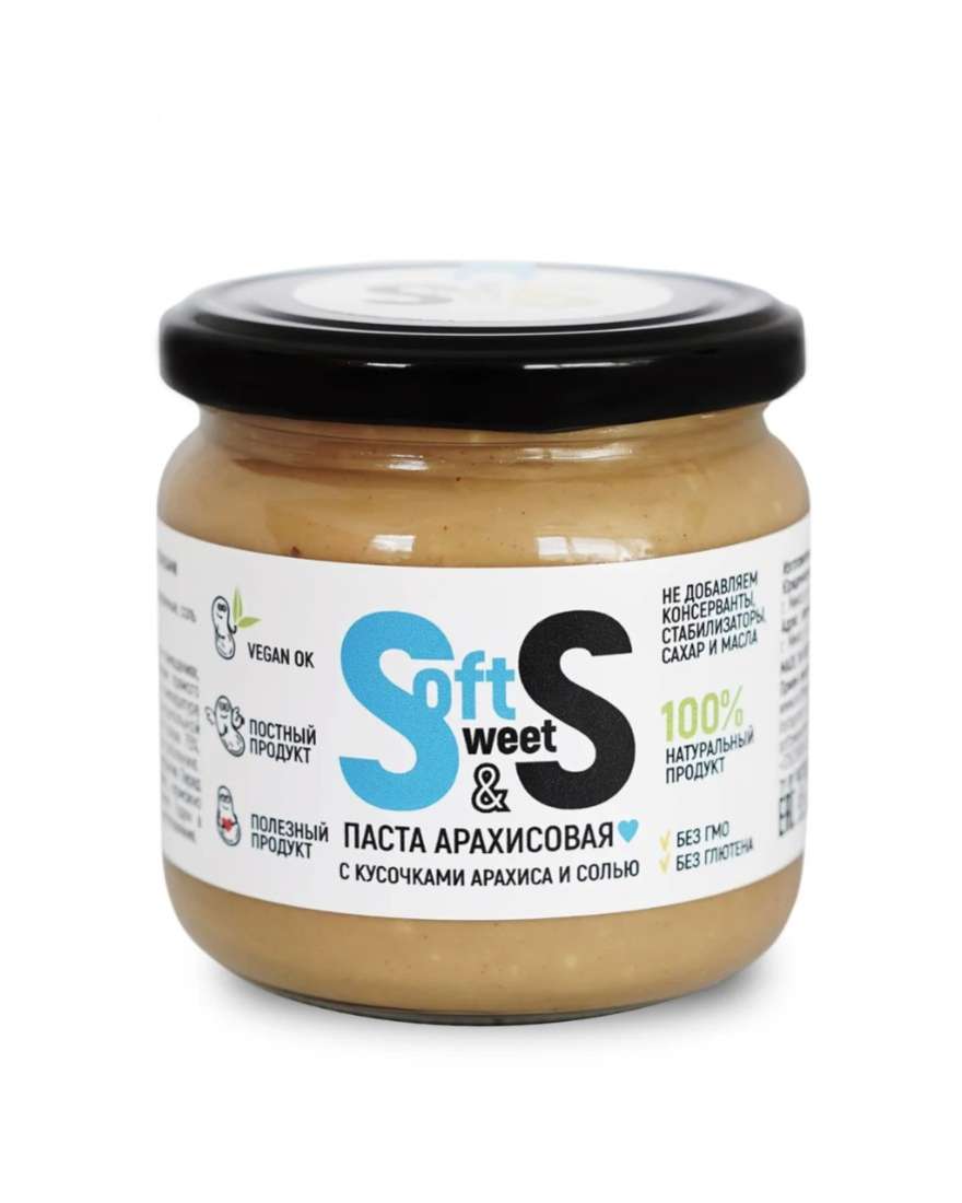 Паста арахисовая Soft&Sweet с кусочками арахиса и солью, нетто: 350гр