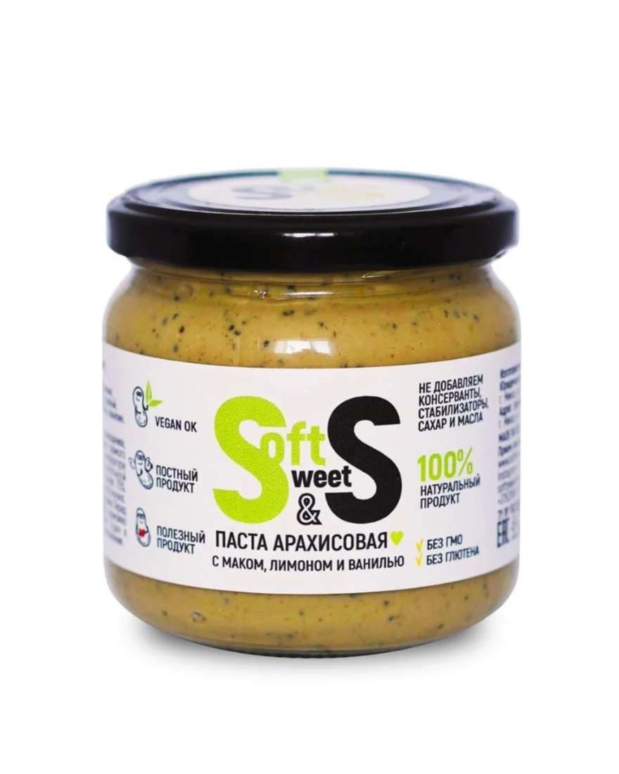 Паста арахисовая Soft&Sweet с маком, лимоном и ванилью, нетто: 350гр