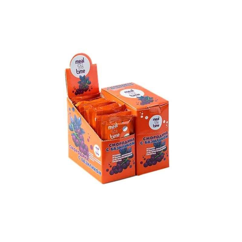 Meal Time — готовая заварка на натуральном чае и свежих ягодах. Всё просто: вылейте пакетик в стакан, залейте 300 мл холодной воды (с газом или без), размешайте. Напиток готов!