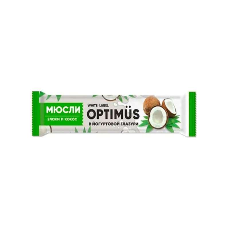 Батончик-мюсли Optimus: «Злаки и кокос в йогуртовой глазури», 20 шт./уп., нетто: 25гр
