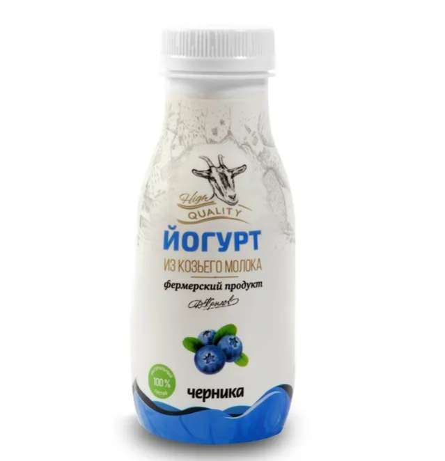 Состав: молоко козье цельное пастеризованное, черника протертая (пюре из черники, сахар), закваска (молочнокислые бактерии и болгарская палочка).