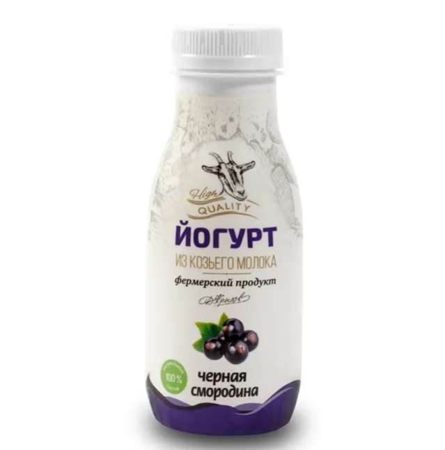 Йогурт из козьего молока цельного с чёрной смородиной протёртой массовой долей жира от 3.0 до 4.5%, масса нетто 250 г